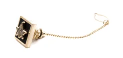 Freemasonry Silver Cross On Black Round Men’s Cuff Links And Tie Chain 3 Piece Accessory Box
