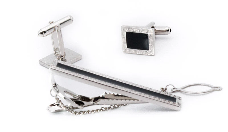 Black Silver Square Men’s Accessory Box 3 Piece Collection Set