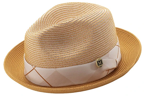 Braided Two Tone Stingy Brim Pinch Fedora Hat In Gold