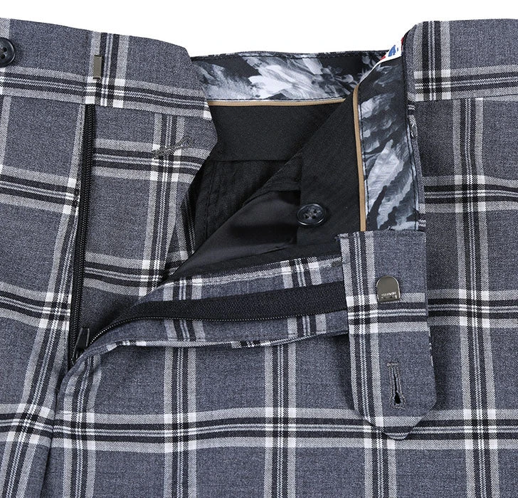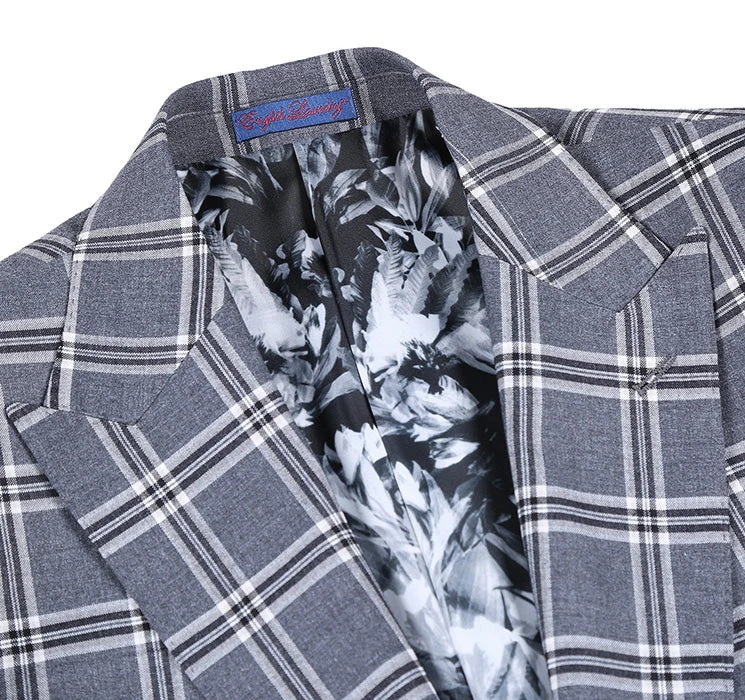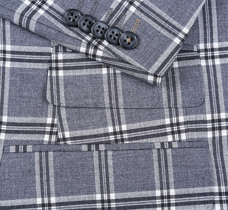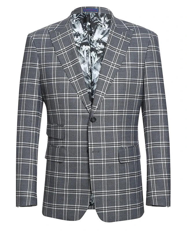 This stunning gray-white checked suit is a must-have for your outerwear collection. Featuring a two-button fastening, peak lapel, and top stitching details, this on-trend style is sure to make a statement.