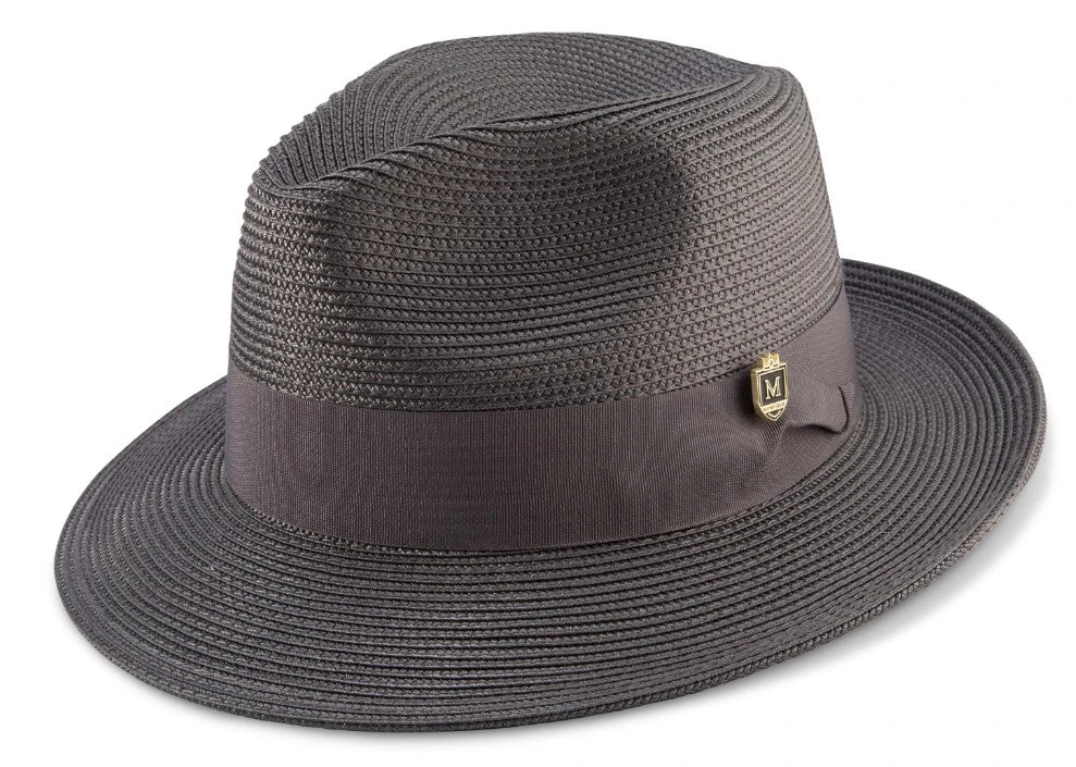 Gray Braided Wide Brim Pinch Fedora Matching Grosgrain Ribbon