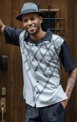 Lavender Houndstooth Color Block Walking Suit 2 Piece Short Sleeve Set With Shorts