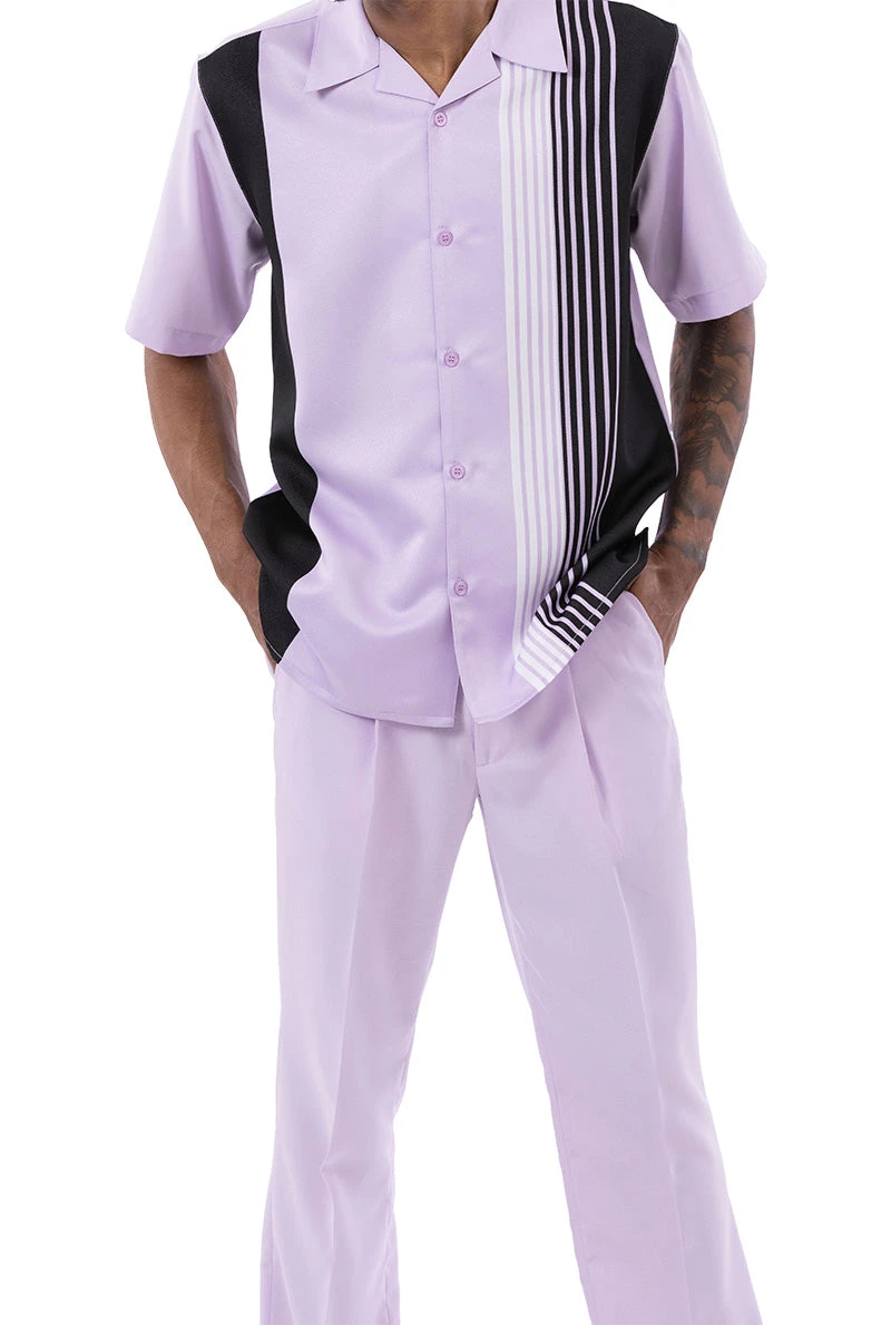 Lavender Vertical Stripe Design Walking Suit 2 Piece Short Sleeve Set