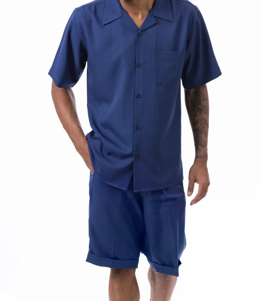 (L/36) Black 2 Piece Short Sleeve Men’s Summer Walking Suit Minimalist Straight Lines Design