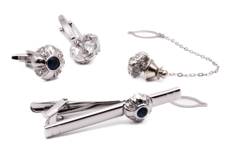 Navy And Silver Crystal Men’s Accessory Box 4 Piece Collection Set