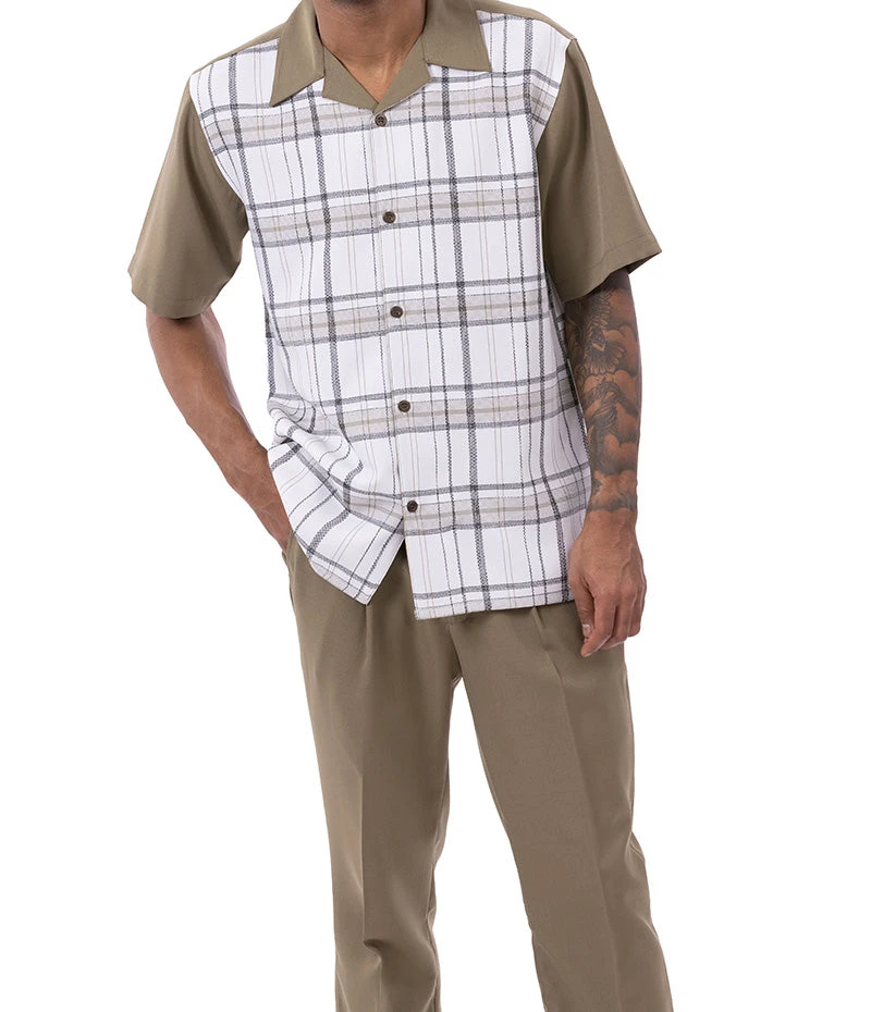 Olive Plaid Walking Suit 2 Piece Short Sleeve Set
