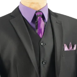 Slim Fit Men’s Suit With Vest 3 Piece 2 Buttons In Black