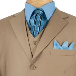 Avalon Collection – Regular Fit Men’s Suit 3 Button 3 Piece British Khaki