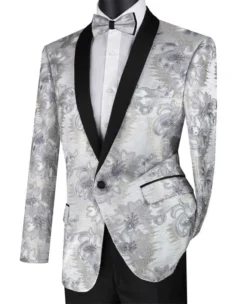 Silver Embroidery Slim Fit Jacket Shawl Lapel With Bow Tie