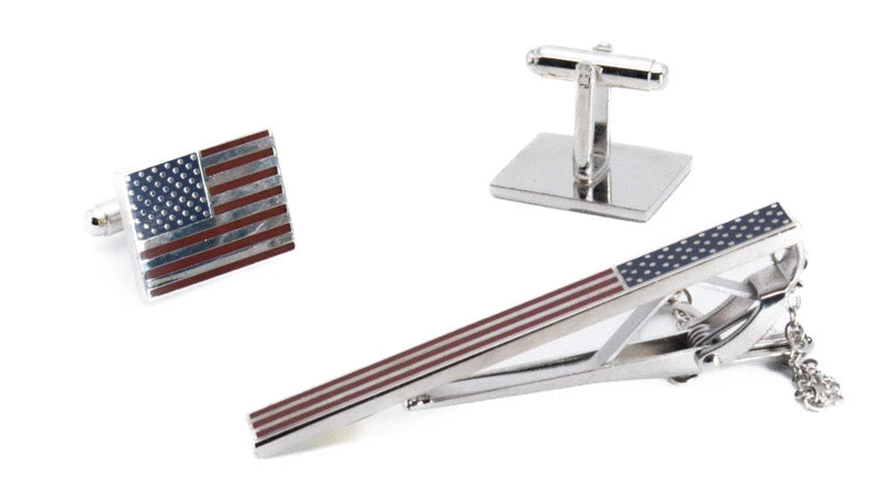 Silver American Flag Men’s Accessory Box 3 Piece Collection Set