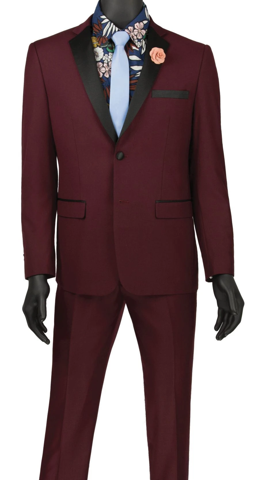 The Slim Fit suit/tuxedo has a narrow cut without much excess fabric, leading to a tighter fit than Regular Fit. If you normally wear Regular Fit, we suggest you choose one size (2 inches) larger than your measured chest size. For example, if the chest size is 44″, you’ll be ordering 46″ Chest – 40 Waist.