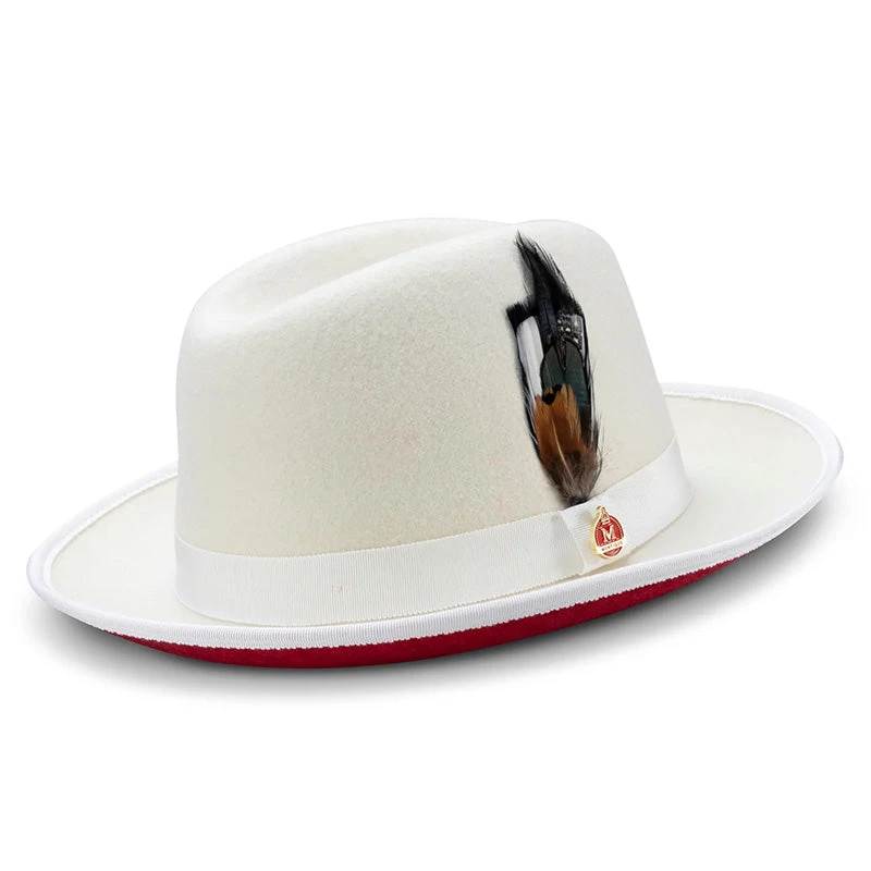 White 2 ¾” Brim Red Bottom Wool Felt Dress Hat