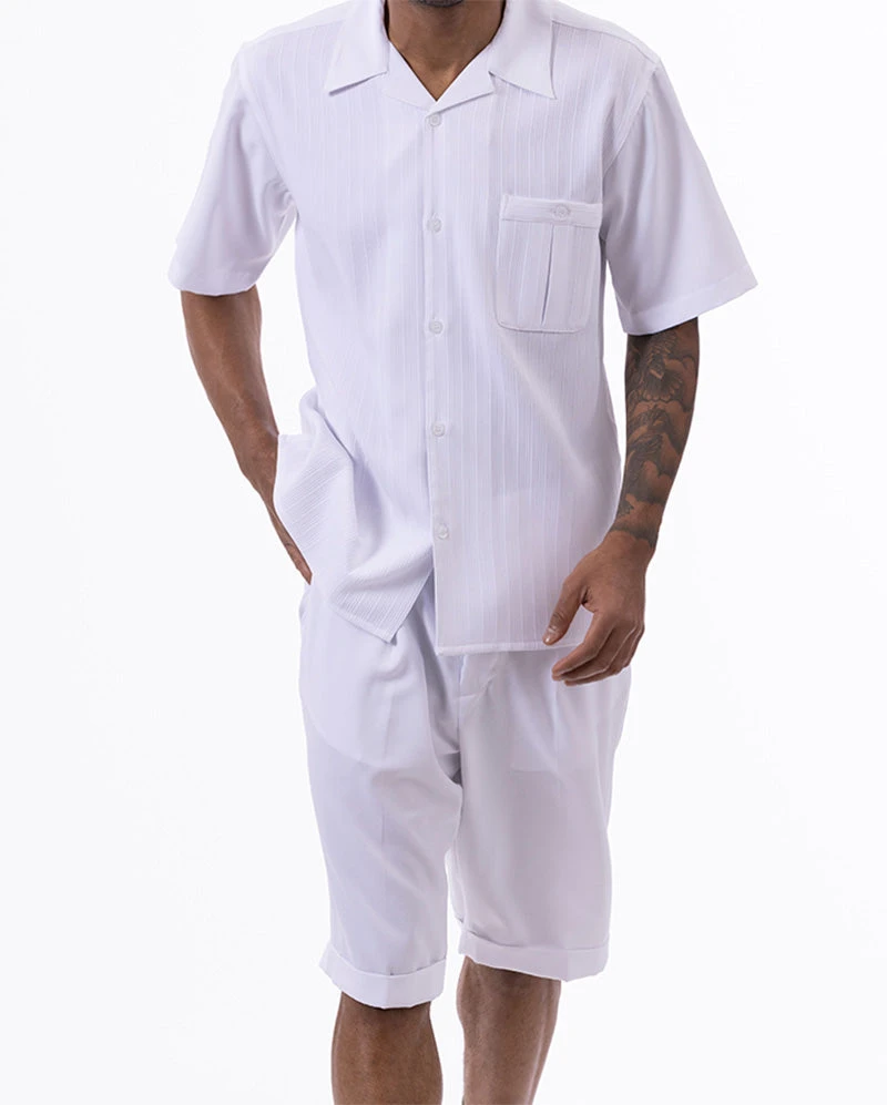 Lavender Tone On Tone Vertical Stripes Walking Suit 2 Piece Short Sleeve Set With Shorts